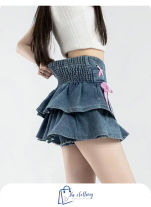 ✨ Chân Váy Jean Ngắn Layer Phối Nơ Hồng – Item “kẹo ngọt” cho nàng điệu đà ✨